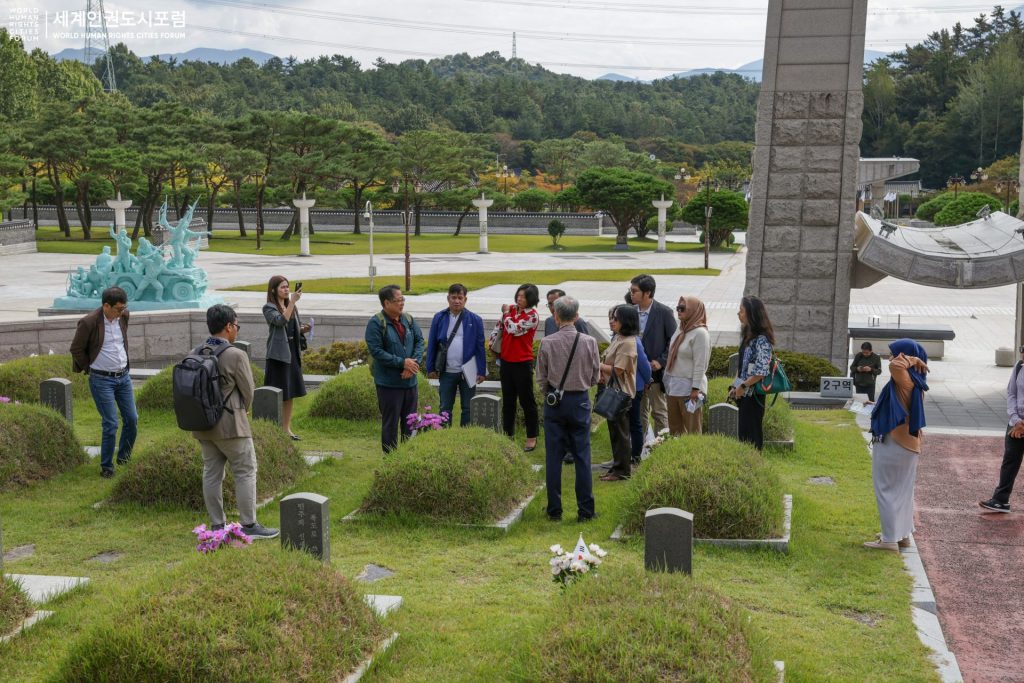 Hari pertama WHRCF ke-14 dibuka dengan sesi Human Rights Tour, di mana peserta dari berbagai negara diajak mengunjungi lokasi-lokasi historis di Kota Gwangju yang memiliki arti penting bagi HAM. Gwangju merupakan kota bersejarah tempat terjadinya “Gwangju Uprising” pada 18 Mei 1980, sebuah pemberontakan massal warga sipil terhadap militer Korea Selatan. Meski awalnya gagal mendorong reformasi demokrasi, peristiwa ini menjadi tonggak penting dalam perjuangan Korea Selatan menuju demokrasi.