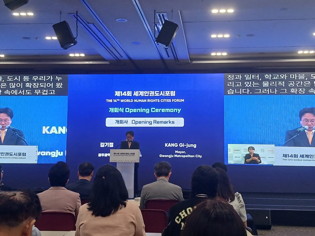 World Human Rights Cities Forum (WHRCF) adalah forum internasional tahunan yang diadakan di Kota Gwangju, Korea Selatan, dan menjadi ajang penting bagi gerakan global “Human Rights Cities” (HRC). Diselenggarakan oleh Gwangju International Center, United Cities and Local Government – Committee Social Inclusion Participatory Democracy and Human Rights (UCLG-CSIPDHR), dan Raoul Wallenberg Institute for Human Rights, tahun ini WHRCF yang ke-14 mengangkat tema “Civic Space and Human Rights Cities.” Tema ini menegaskan pentingnya ruang sipil sebagai fondasi bagi konsep HRC, yaitu lingkungan di mana setiap orang dapat bebas berpartisipasi dalam aspek-aspek kehidupan seperti politik, ekonomi, sosial, dan budaya.