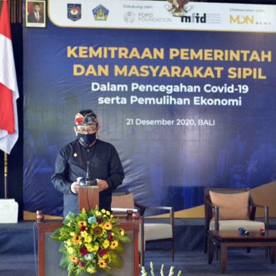 Berangkat dari kondisi tersebut, Kementerian Dalam Negeri melalui Pusat Fasilitasi Kerjasama, Pemerintah Provinsi Bali, Ford Foundation, International NGO Forum on Indonesian Development (INFID) dan MDN Visionari Indonesia menyelenggarakan Konsultasi Publik, “Kemitraan Pemerintah dengan Masyarakat Sipil Dalam Pencegahan Penularan COVID-19 serta Pemulihan Ekonomi Nasional di Daerah Provinsi Bali, Provinsi Nusa Tenggara Barat (NTB), dan Provinsi Nusa Tenggara Timur (NTT)” di Ramayana Hotel Kuta Bali, 21 Desember 2020. Kegiatan ini dilakukan dengan mekanisme hybrid, yaitu kombinasi luring dan daring. Protokol kesehatan yang ketat dilakukan untuk mekanisme luring, yaitu peserta melakukan tes antigen sebelum memasuki ruangan kegiatan. Total peserta luring dan daring yang hadir dari ketiga provinsi yaitu lebih dari 300 peserta.