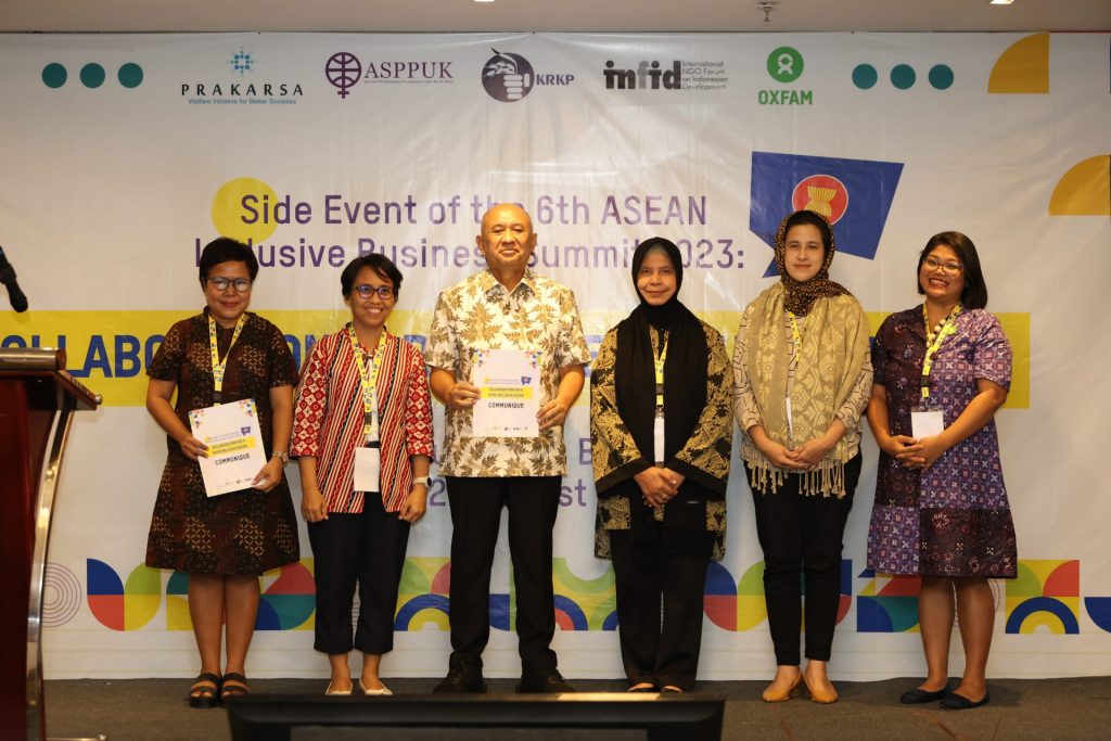 Nusa Dua, Bali 22 Agustus 2023 – Cetak Biru Masyarakat Ekonomi ASEAN (MEA) 2025 menggambarkan ekonomi yang lebih tangguh, inklusif, berorientasi pada rakyat, dan berpusat pada rakyat. Pertumbuhan ekonomi yang inklusif dan berkelanjutan saat ini menjadi prioritas di Asia Tenggara. Sebagaimana tertuang dalam SDGs 17 “Partnership for the Goal” yang telah diadopsi oleh seluruh negara anggota ASEAN, kolaborasi antarpemangku kepentingan untuk mendorong bisnis yang inklusif, bertanggungjawab, dan berkelanjutan mutlak diperlukan. Menanggapi hal tersebut, pada tanggal 21-22 Agustus 2023, 59 Organisasi Masyarakat Sipil (OMS) dari berbagai negara ASEAN berkumpul di Nusa Dua Bali dalam acara Side Event Inclusive Business Summit 2023: “Collaboration for a More Inclusive ASEAN” yang diinisiasi oleh International NGO Forum on Indonesian Development (INFID), Perkumpulan Prakarsa, Koalisi Rakyat untuk Kedaulatan Pangan (KRKP), Asosiasi Pendamping Usaha Kecil Perempuan (ASPPUK), dan Oxfam di Indonesia.